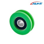 | U-образна ролка | U-образният жлеб пасва плътно на кръгли кабели или телени въжета. | Гаражни врати, подемни устройства | Сачмен лагер с дълбоки канали | Полиамид, HDPE |